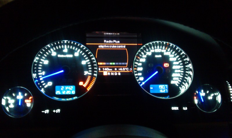 и так,купил приборку под соблюдение разметки...вариант окончательный!!!!!!заменил все светодиоды в приборке-из-за чего она стаяла ярче. саму приборку разобрал и покрасил в черный лак( как и накладку на карбон)-
