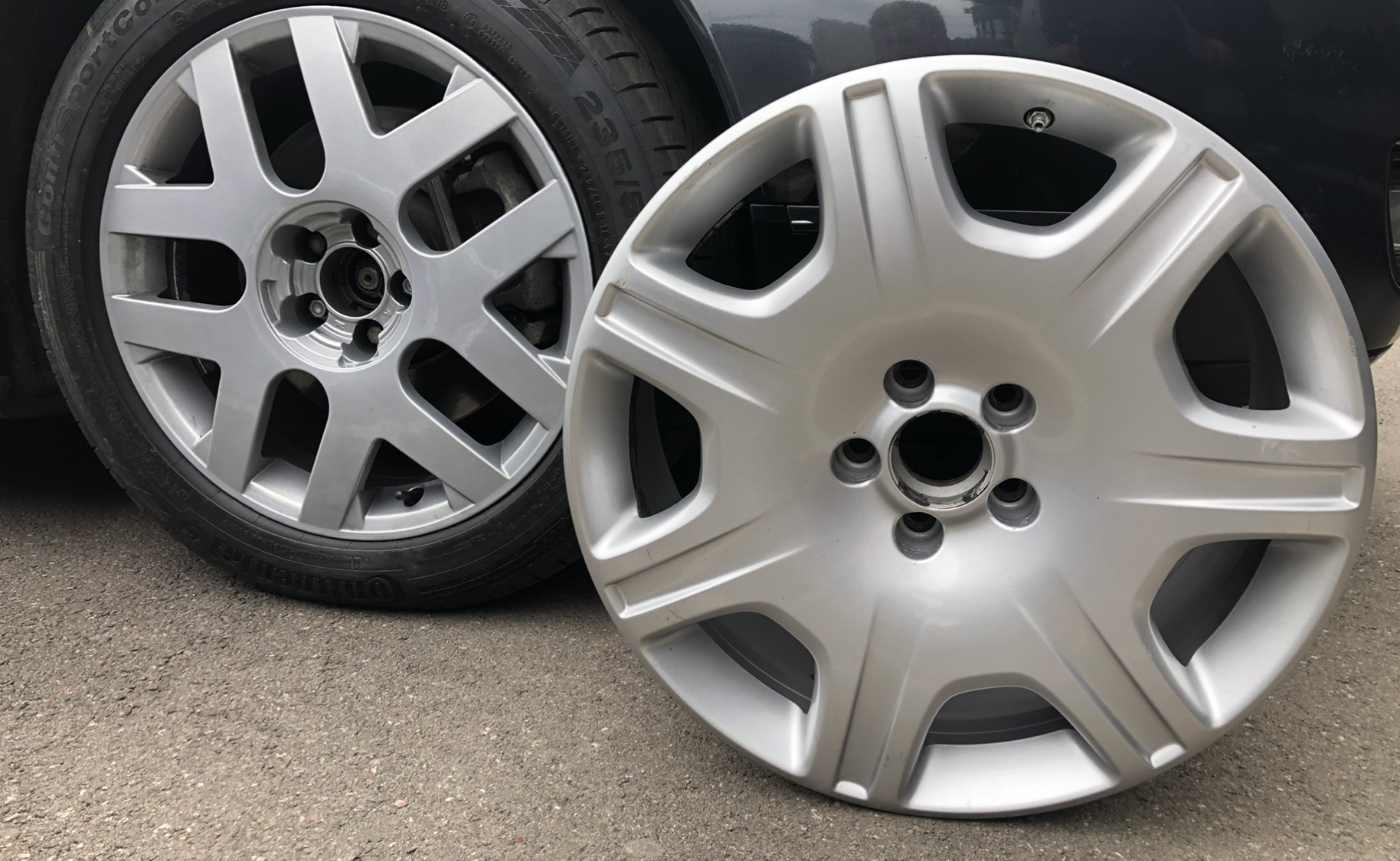 Недавно красил диски R18 на другом авто, в классический цвет, фото прикрепляю, так-же фото диска покрашенного в графитовый цвет.