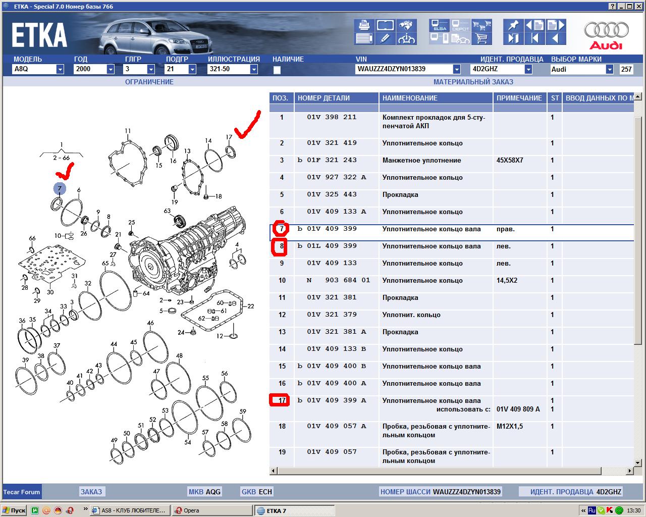 Подскажите люди добрые,номера сальников АКПП *ECH*5HP-19,мотор AQG(3,7),VIN-WAUZZZ4DZYN013839.Нужны номера сальников приводов(лев.и прав.) и сальник раздатки.Зараннее выражаю огромную благодарность.