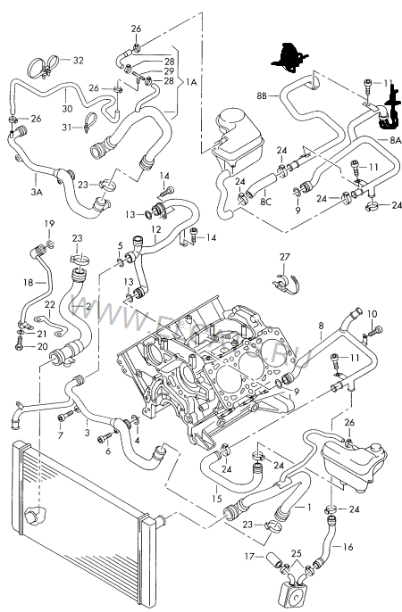немогу по схеме найти 2 болта которые идут на удаление воздуха в печке, они у меня обломаны на половину и течёт антифриз мотор afb стоят примерно тут подрисовал тут