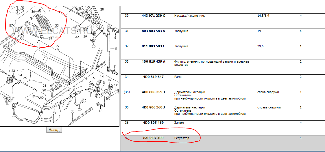 Номера подкапотных коробов для фильтров салона