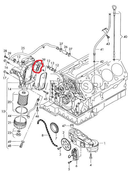 не Витя, мне сказали, что течет из патрубка системы охлаждения (077 117 411 A) я его синим обвел......