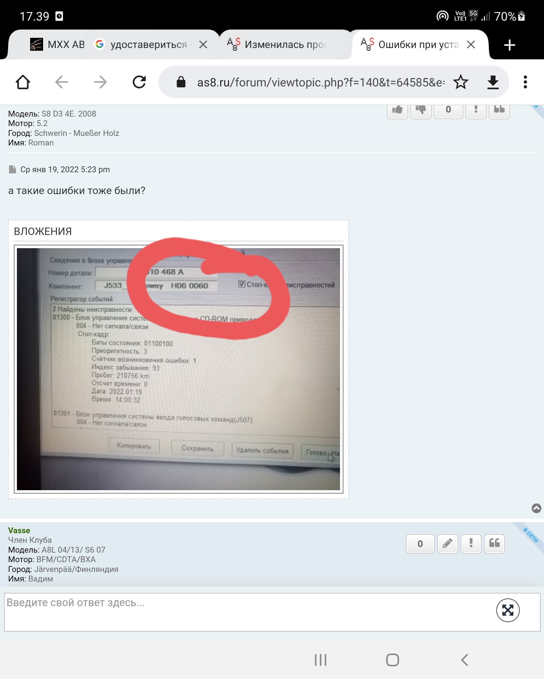 Вас говорит что вторая ошибка в оптической шине, или потому что стоит 2Г компонент в машине. И я не могу просканировать оптическую шину, прога выдает ошибку.