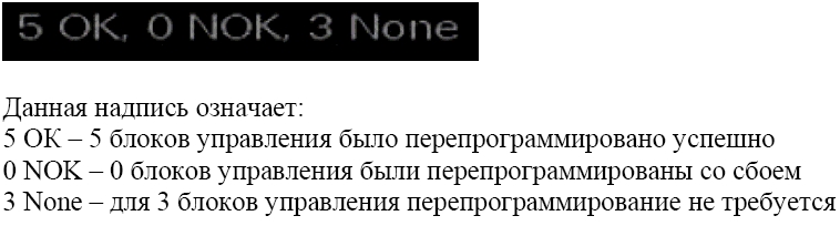 В верхней части дисплея указывается, сколько блоков управления уже перепрограммировано, и, через слеш, сколько всего требуют обновления.