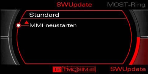 В завершении процесса еще раз раз перезапустите MMI с помощью одновременного нажатия трех клавиш - 4, 2 и 5. Обновление MMI завершено, осталось восстановить пропавшие настройки и провести адаптацию сбившихся систем.