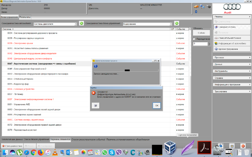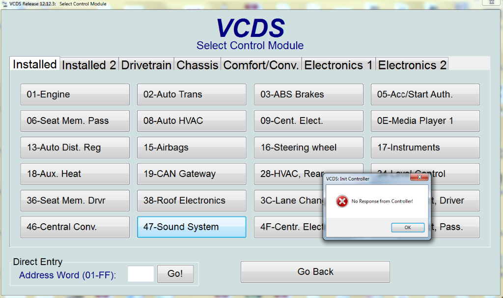 Народ, помогите! Уже всю голову себе сломал. Ставлю в А8 акустический усилитель Bose. Блок J525. Подключил. Какое-то время он диагностировался, показывал ожидаемые ошибки по защите компонентов и тп, кароче фурычил. Сейчас вот уже второй день жму 47 Sound System - в ответ - Нет ответа от контроллера. Причём, если скинуть с усилка питание, то контроллер 47 вообще пропадает из списка установленных компонентов. Значит, CAN его как-то видит... Видит, но не получает ответа...
