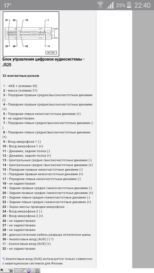 11 - Вход микрофона 2 (-), НЧ (-) от Japan-Nav/US-Telematik (начиная с календарной недели 22/04)