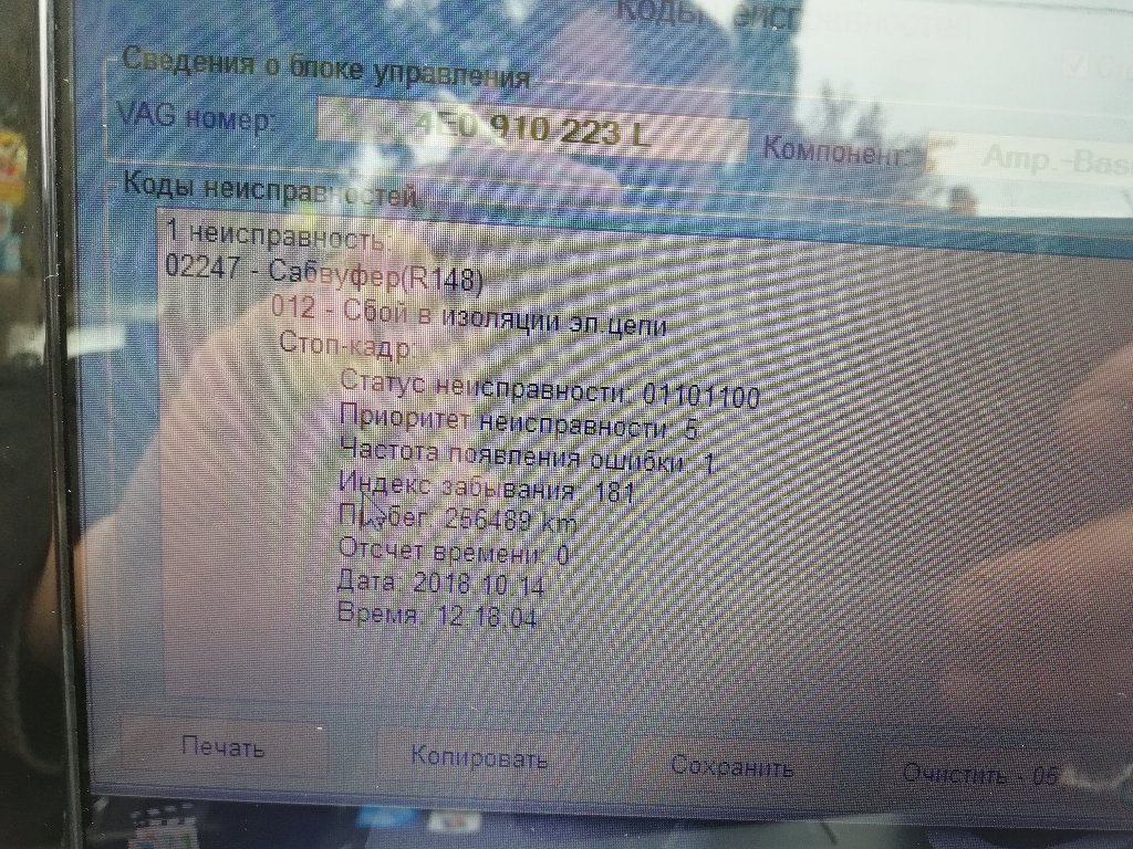 Перестал работать саб. Слышно только не сильное хрюканье. Аудиосистема штатная не бозе. Всё остальные динамики работают.