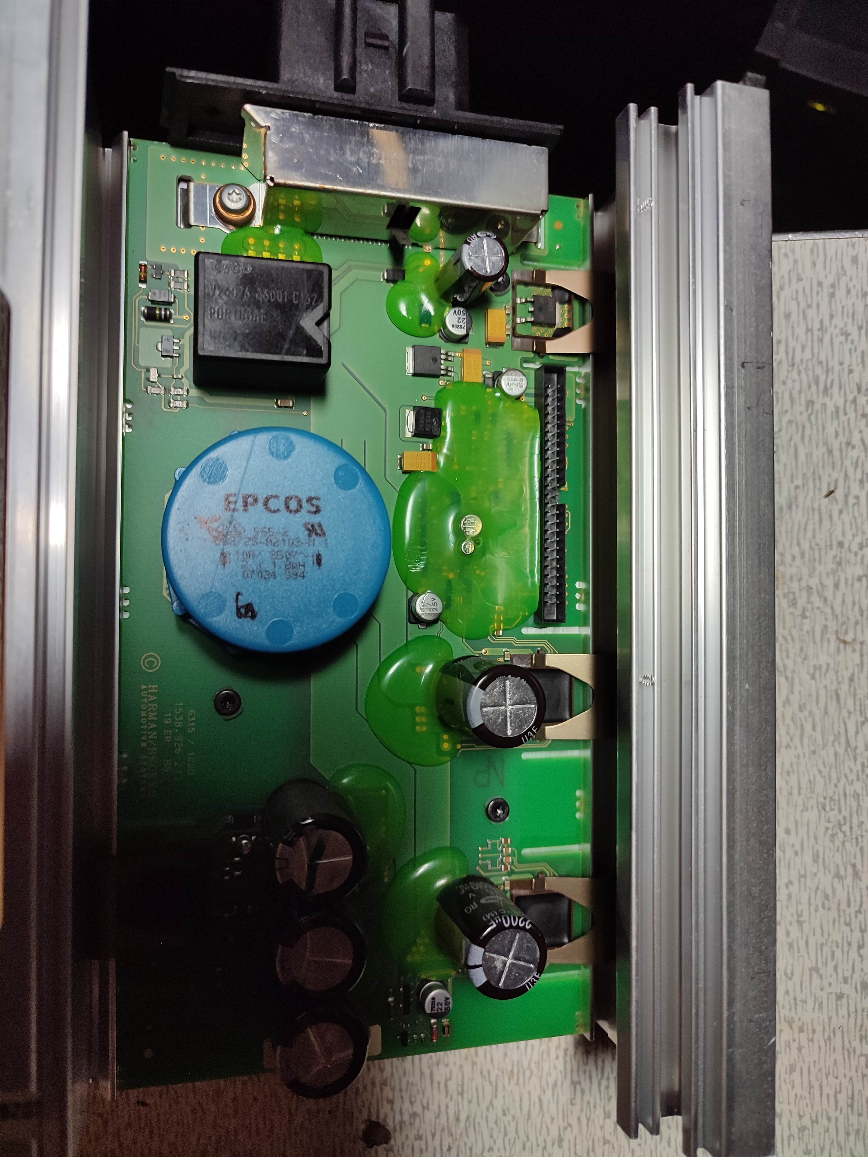 Всем привет. Нужна помощь. Усилитель, когда холодно, работает нормально. Летом периодически отключаются каналы. Сначала сабвуфер, потом динамики в передних дверях. В общем, звук никакой. Кто-то писал, что разобрал, поменял термопасту, поставил вентилятор. Решил посмотреть у себя. Снял усилитель, раскрутил, убрал верхнюю плату. Думаю, что это питание и предусилитель. Могу ошибаться. Осталась плата, что на радиаторе. Оконечник. Так? Вот у меня 4 выходных транзистора. Почему-то только три прижаты к радиатору. Один открытый. Это нормально? Я так понимаю, нужно как-то отжать пружины и снять пластины чёрные сверху транзисторов. Что-то пружины толстые, а пластины хлипкие. Кто выполнял данную процедуру, помогите.