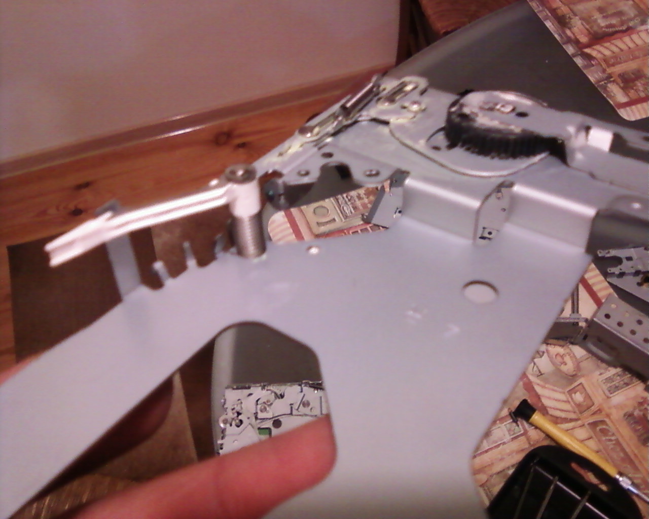 разобрал я свой CD чейнджер на 6 дисков до конца, ибо тормозить в разборке было поздно.снял я значит и привод и лазерную головку, и ничего на них не нашел, ни опознавательных знаков, ничего что могла сказать о модели...