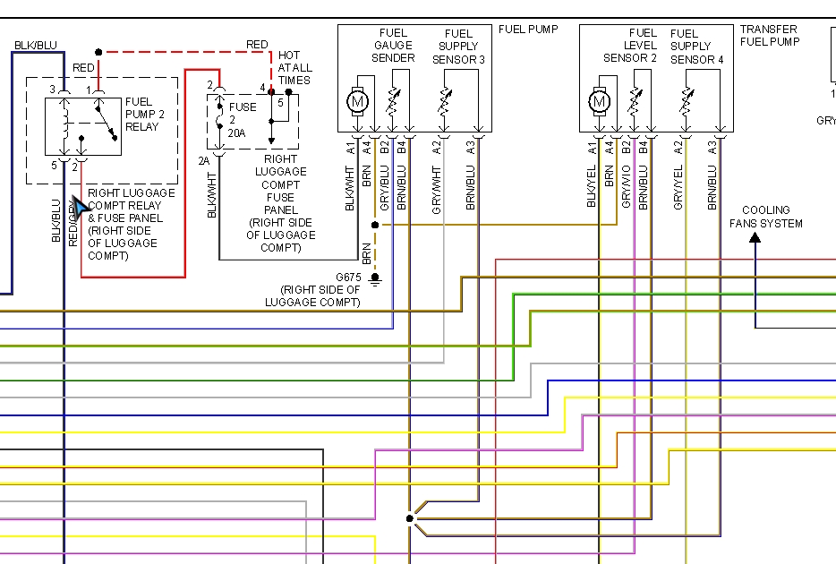 Всем доброго дня. Подскажите,где проходят провода идущие к бензонасосу и КАКОГО ЦВЕТА? (4,2 бензин , 2005.11мес.)