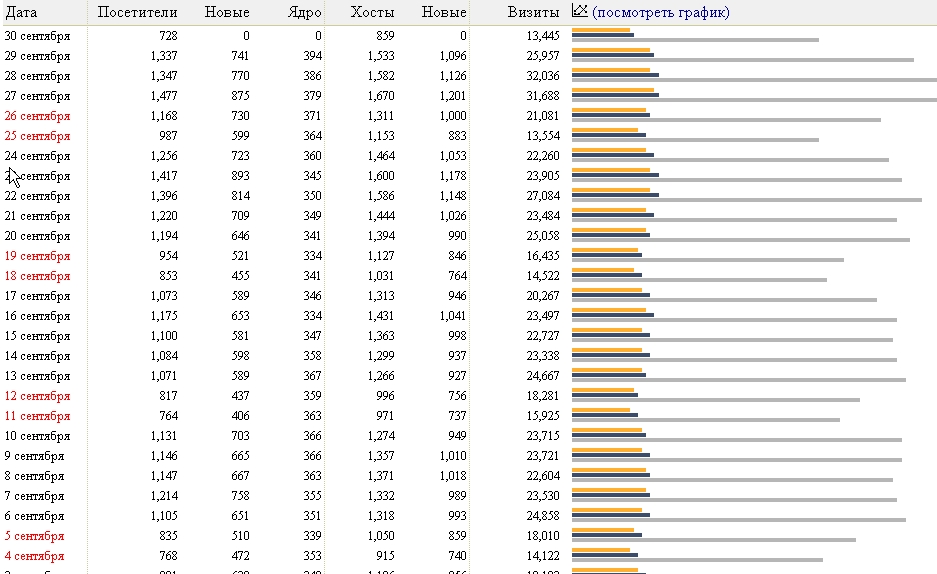 Вот совсем недавно был рубеж в 1000 посетителей в день.
