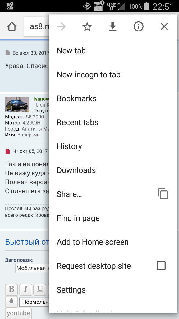 Для доступа к форуму с андроида надо поставить галочку request desktop site