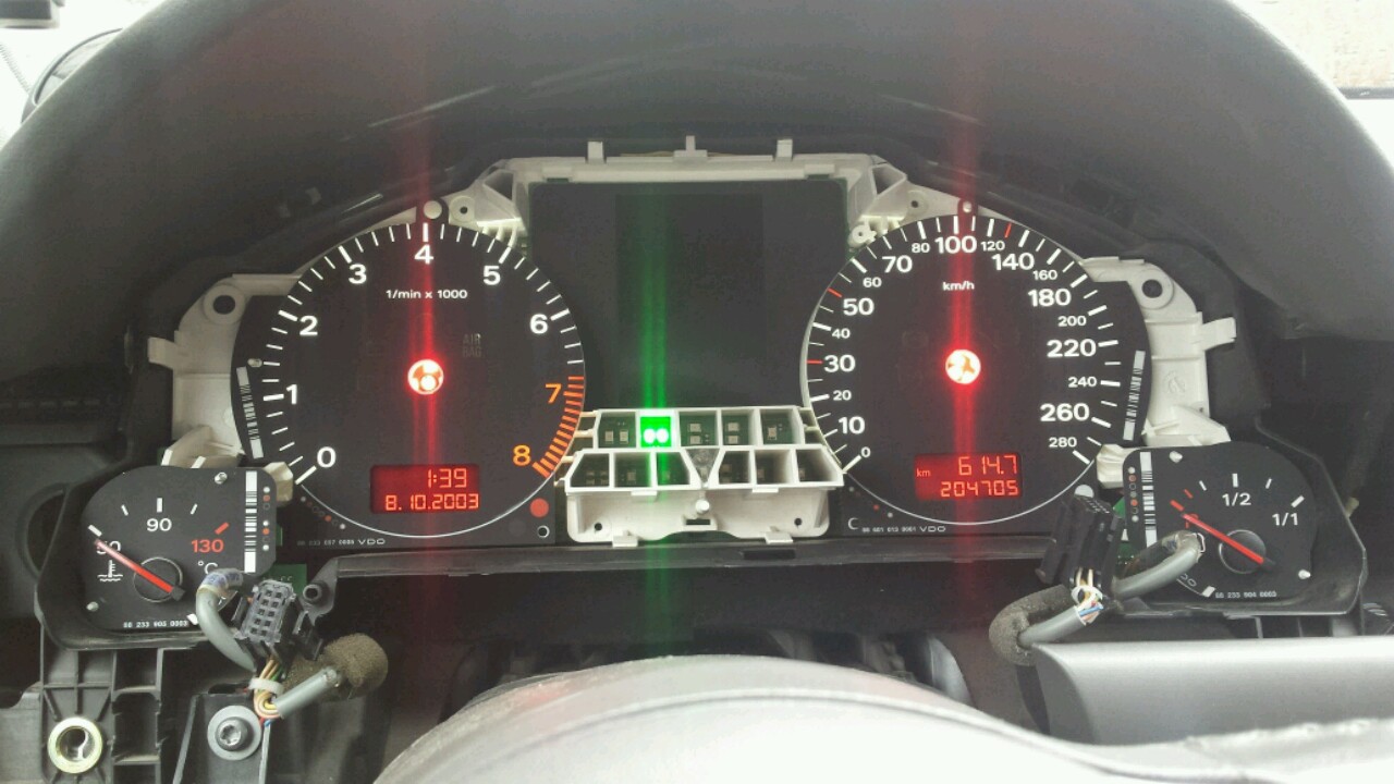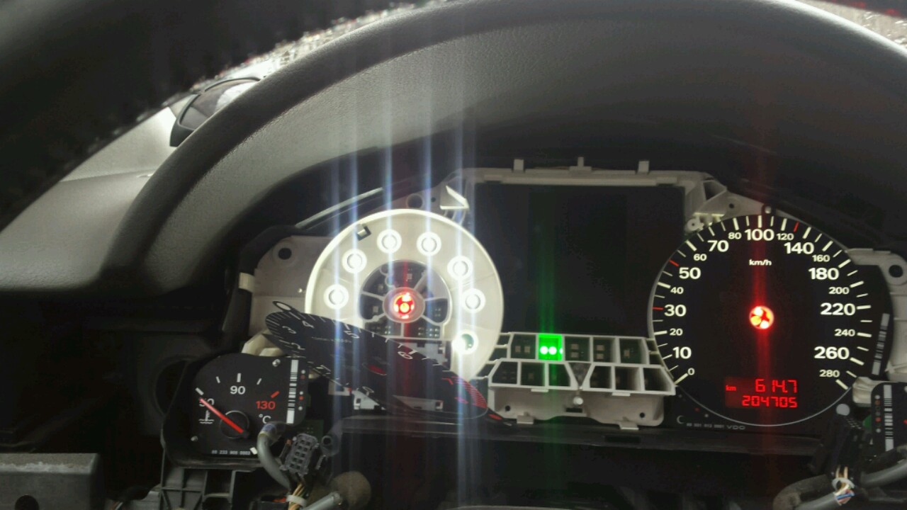 Проверка подключив к машине. Причем после перепайки яркость вручную не регулировалась. Подключив vas pc провел прлверку исп механизмов. Система автоматически поверила подсветку и все остальное. После чего вручную все настраивается. Правда пришлось еще и стрелки калибрануть ) с первого раза поставить стрелки как было почти не реально. Так как когда снимаешь их слегка проворачивать нужно чтоб не сломать