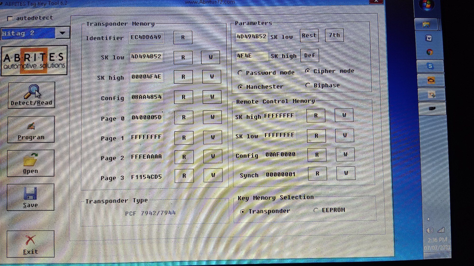 Я всё равно нажимал "через моторник", чтобы не ошибиться при вводе, так надёжней, новый ключ определялся как 7942- 7945.