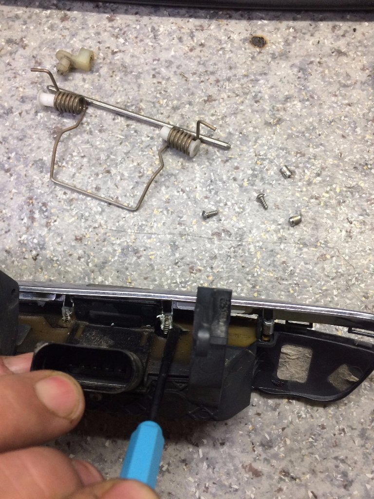 Добрый день, перестала работать кнопка на водительской двери, вопросик такой: разобрал с горем пополам водительскую дверь, снял карту, освободил стекло, но так и не пойму как саму ручку то снять. Доступ к ручке изнутри есть, нигде информации не нашел, и смотрю как баран на новые ворота, и не понимаю как это сделать