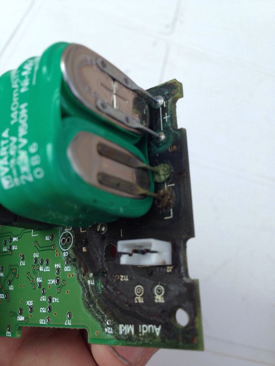 - Далее демонтируем старую АКБ и начинаем (отмывать / пропаивать плату), затем припаиваем либо новую АКБ, либо оставляем без АКБ, чтобы больше туда не лезть, так как подобная ситуация с большой вероятностью рано или поздно повторится. АКБ в данном узле является расходником, как и в любом мобильном телефоне. Лично у себя в колоколе я демонтировал батареи, во избежание проблем в будущем. Так как мой личный колокол это дорест, по нему ошибка отсутствует.