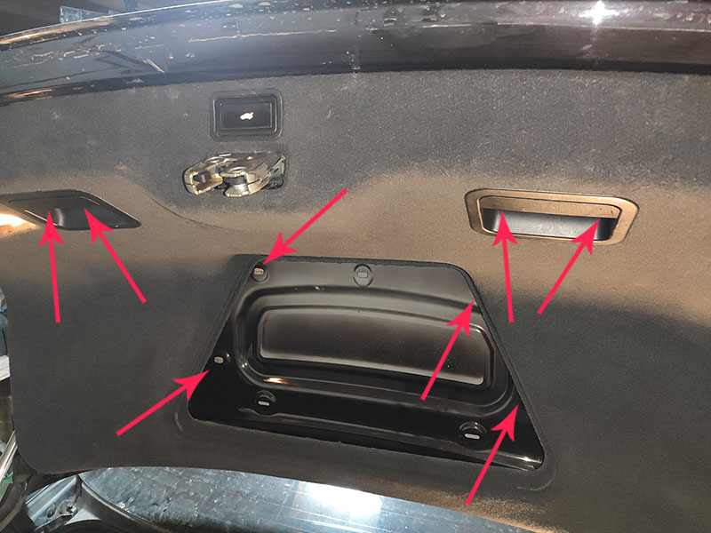 Саморезы расположены в следующих местах: Снимаем пластиковый кожух замка крышки багажника; аккуратно поддеваем обшивку багажника снизу (ближе к заднему стеклу) и плавно тянем для снятия, особых усилий прилагать не нужно, все снимается легко.