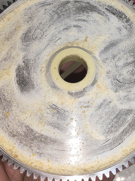 Там скорее и то и другое. Стоит круглый точильный камень, ну типа. Так вот он просто загрязнен алюминием и сила электромагнита тоже слаба. Два фактора дают такую картину