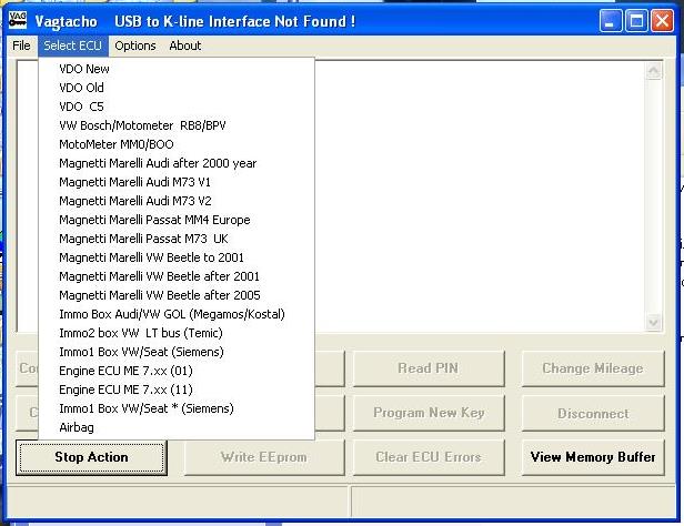 Соклубники, выручайте! Кто пользовал Ваг Тахо, подскажите как подружить его с машиной? Подключается норм, определяет тип приборки, а дальше: No connection to ECU! или Selected ECU not found! И пин никак не выудить... Уже думаю может сам софт у меня косячный или драйвера... Или руки из ж... Вот сама прога: