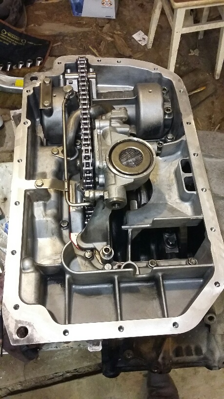 Похоже, что это таки форсунка подачи масла на средние поршни. Через нижний поддон видно.
