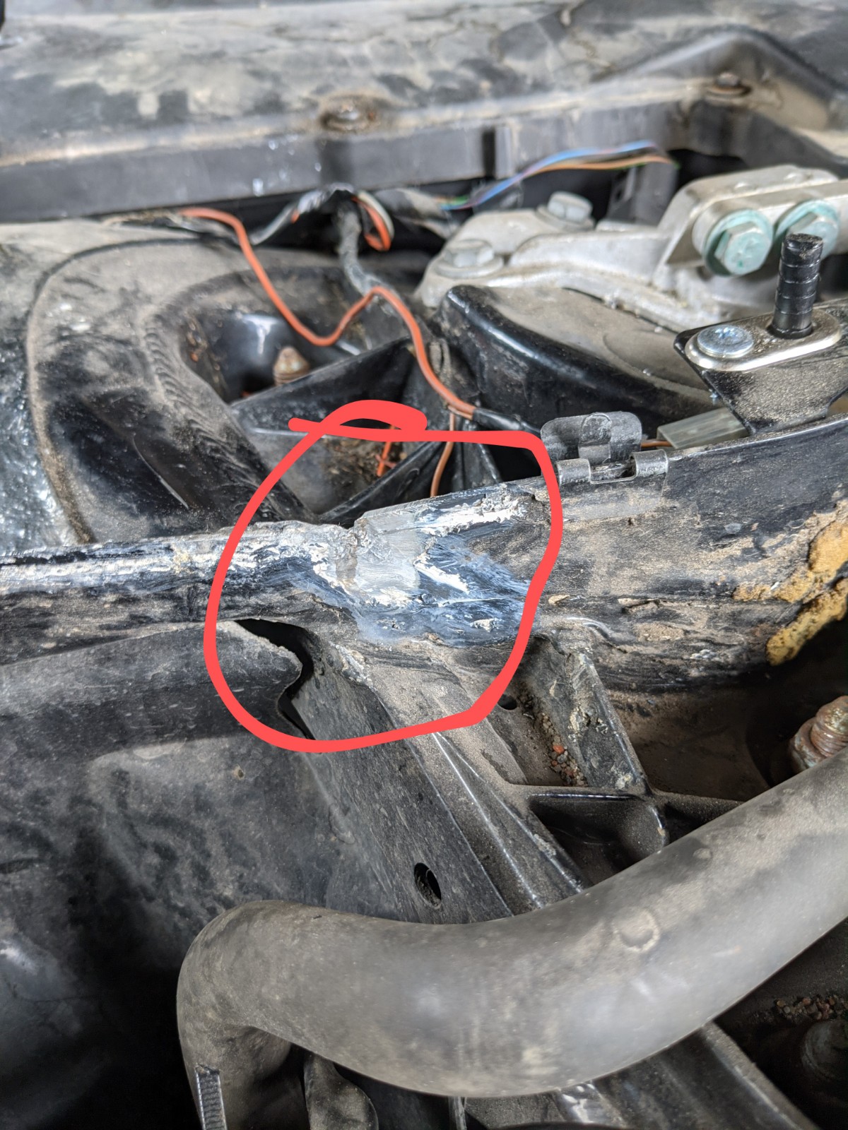 На основании того, что щит разделился на две части, которые были не сварены, а склеены чем-то вроде мастики (сварка была только на вертикальных швах, тоже на фото), он сделал заключение, что VIN изменён.