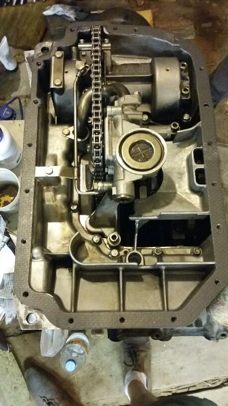 Похоже, что это таки форсунка подачи масла на средние поршни. Через нижний поддон видно.