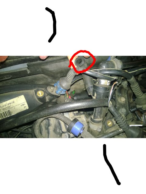 этот шланг идет на пластмассовый кожух который прикручен к дроссельной заслонке и из него идет сосок на который этот шланг и одевается. тобиш если судить по твоей фотке то это то место-откуда торчит зеленая заглушка с куском шланга