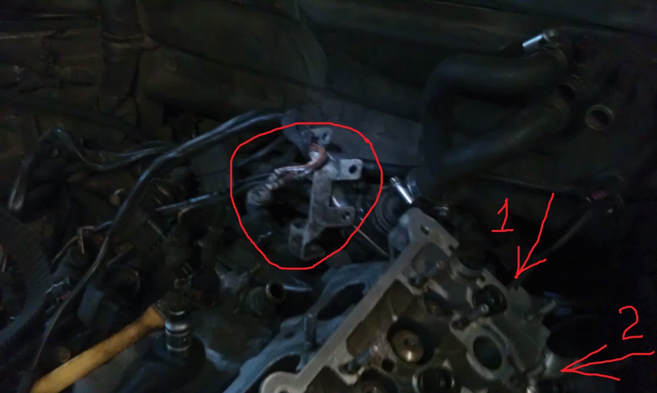Походу держит трубку системы ОЖ, от расширительного бачка к задней части двигателя, на левой голове, слева по ходу движения, рядом с маслянным щупом