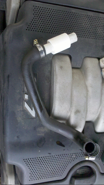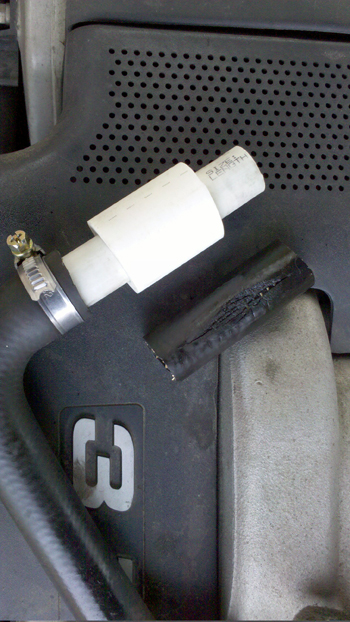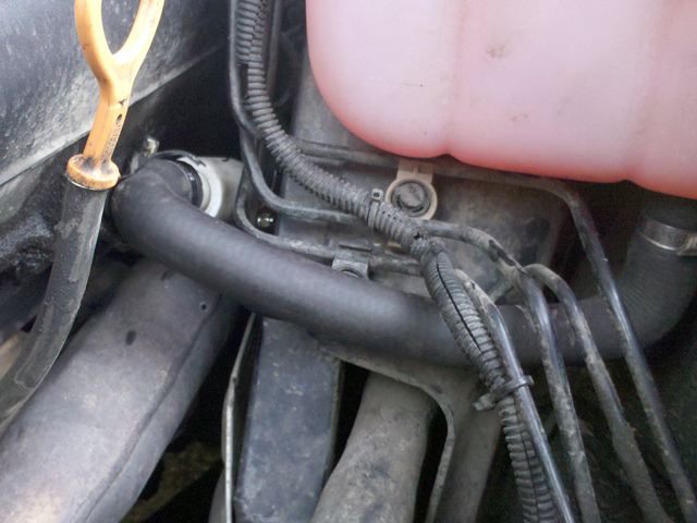 Соскочил патрубок расширительного бачка на AEW и какое-то время соприкасался с выпускным коллектором и конечно прогорел.