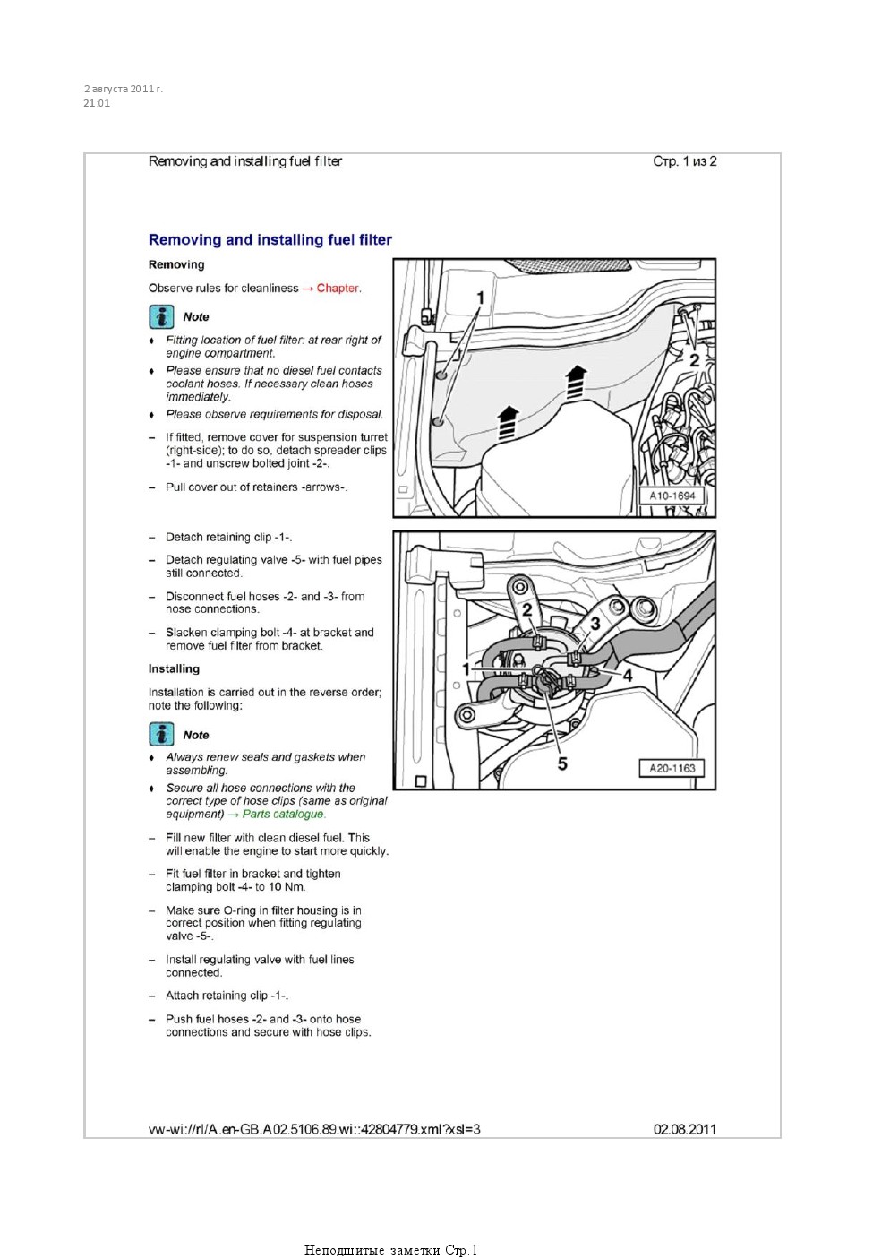 Re: замена топливного фильтра на TDI - есть ли особенности?