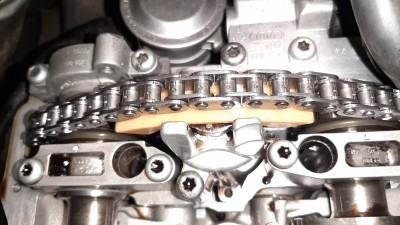 Ну я не очень вижу метку на выпускном валу. На впускном вроде по стрелке на бугеле. Натяжитель тоже вроде по номеру правильный-088...и стоит вверху на заглушенной.