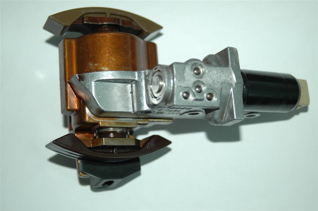 на нижней фотке хорошо видно как верхний башмак находится в неподвижном состоянии пока не будет достаточного давления масла,чтобы стопорный палец разблокировал ход поршня,а нижний башмак подпружинненый,он является успокаителем при заводке.