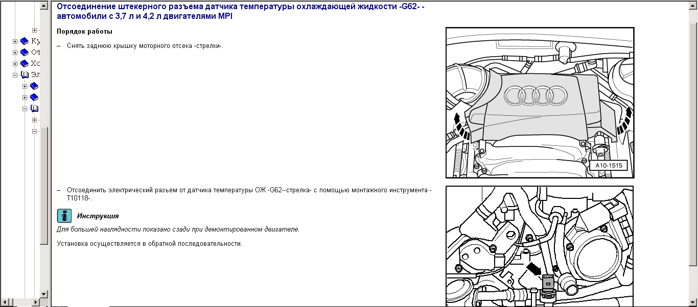 Оч похожая проблема. А8 4,2 2000г. Стрелка температуры охл.жидкости (двигателя) часто падает на ноль. Ежели бы знать где датчик, может быть по кабелю можно отследить разъемы с зеленкой. Или тупо потрошить их все подряд?