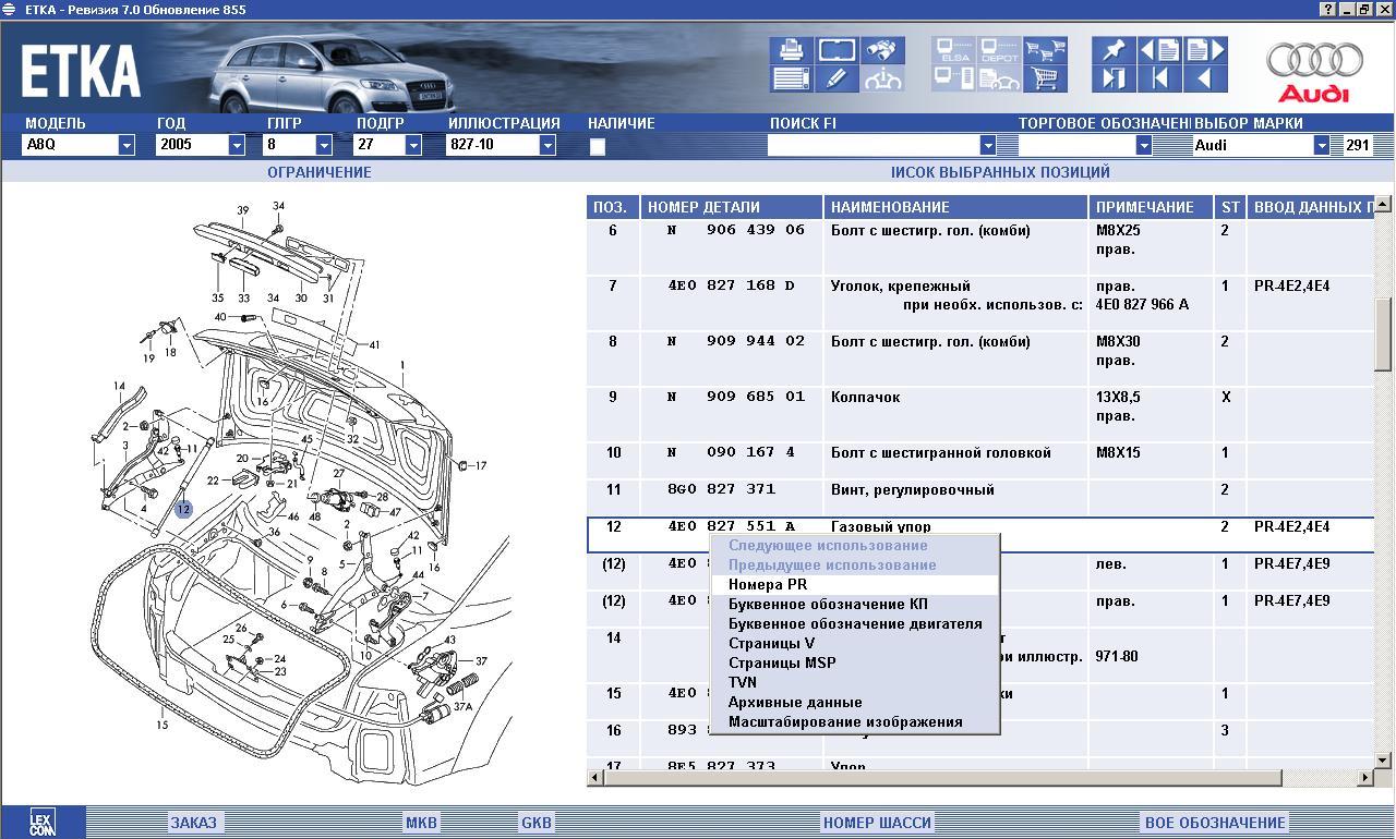 Предположу что ты решил подобрать амортизатор крышки багажника и столкнулся с подобным выбором... Самым правильным и безошибочным будет посмотреть расшифровку VIN или наклейку в нише багажника или в сервисной книжке. Допустим там будет стоять PR код 4E2- тогда деталь соответственно 4E0827551A. В самой ETKA можно посмотреть как расшифровывается тот или иной PR код. Сделать это можно двумя способами: