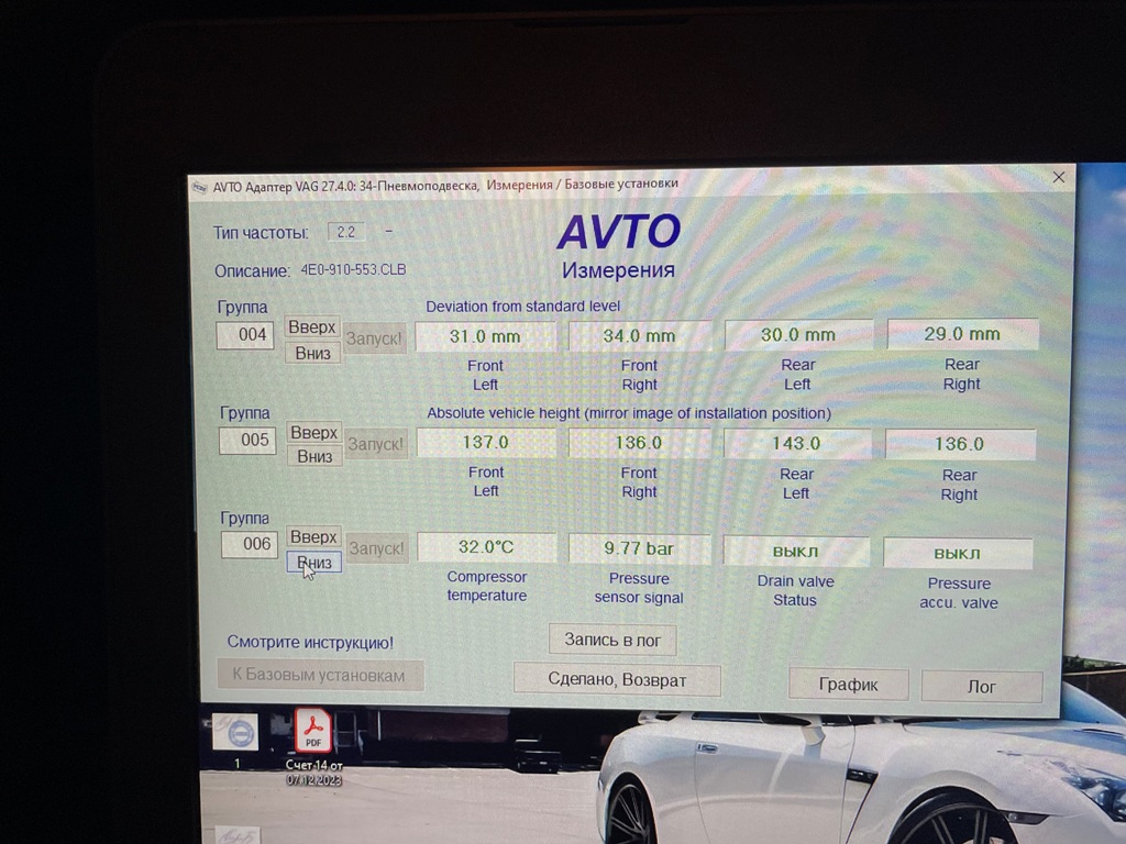 - в субботу утром один раз загорелась желтая машинка, зеленая не горела, не моргала, прочитал ошибки - 01772 - Сигнальный провод от датчика давления регулятора дор. просвета, 01400 больше не появляется, потом ездил активно в субботу, воскресенье, ошибок больше не было. Думаю блок клапанов чудит, может влага, а может еще что-то с ним.