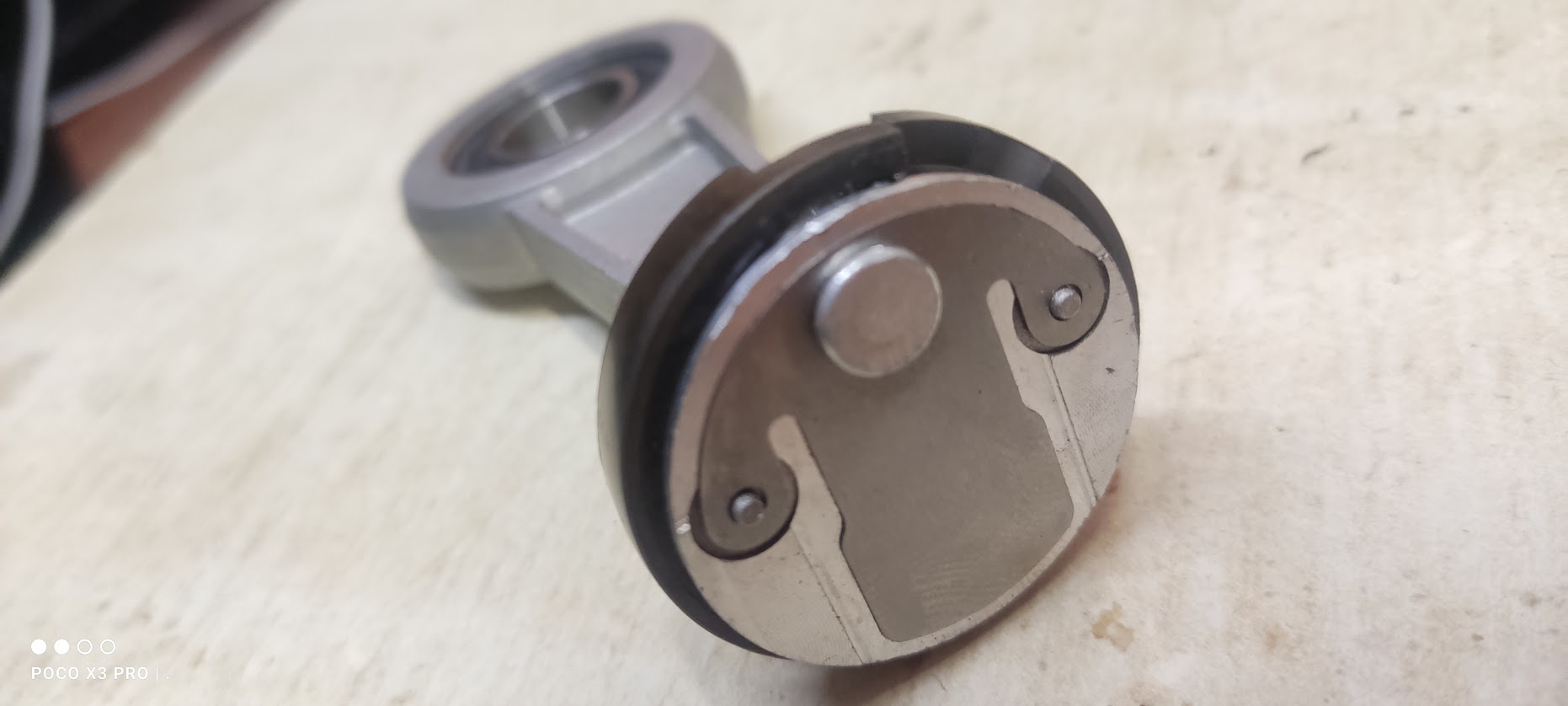 это клапан. как бы впускной. Но при сборке его заклепывают с чрезмерным усилием и он загибается в обратную сторону. От чего не прижимается к поршню.