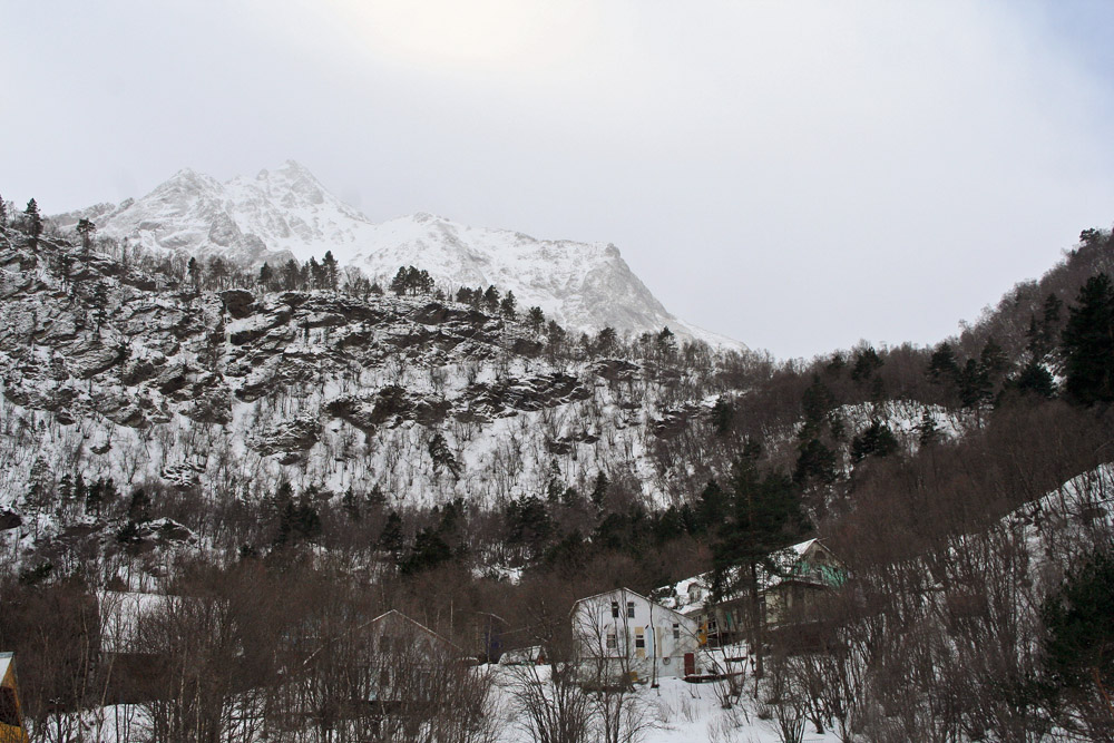 На момент приезда погода начала портиться, начался настоящий ураган. Шквалистый ветер в горах, который начинает слабо шуметь в вершинах, и, по мере опускания в ущелье гул и сила ветра увеличиваются, + снег.....