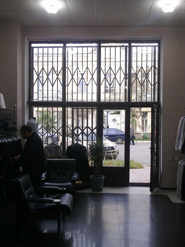 Теперь магазин перешёл в другое место, где витрина довольно страшно выглядит, убирать решётки времени у них нет, так что, надо работать, с чем есть(если получится).