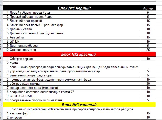 - Полный список предохранителей