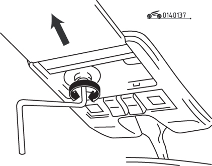в пластике в плафоне, там где клавиша открытия люка. там кажется шестигранная Z образная фиговина. и есть куда ее воткнуть