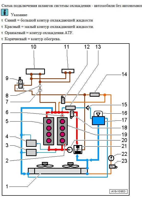 Из всего что я рассмотрел на схеме, это клапан ОЖ головки блока цилиндров N489. Мне кажется это он подклинивает. Логика какая: этот клапан замыкает циркуляцию в блоке, для более быстрого нагрева двигателя. В этом коротком контуре есть отвод на теплообменники печки с электороклапаном и добавочной помпой. Когда отвод для печки блокируется клапаном то видимо создаются условия для заглючивания клапана N489. Как только я ставлю на печке 16, открывается электроклапан, тем самым открывая контур на теплообменники. Происходит (возможно) перепад давления в контуре блока цилиндров и клапан N489 открывается. Других объяснений у меня нет.