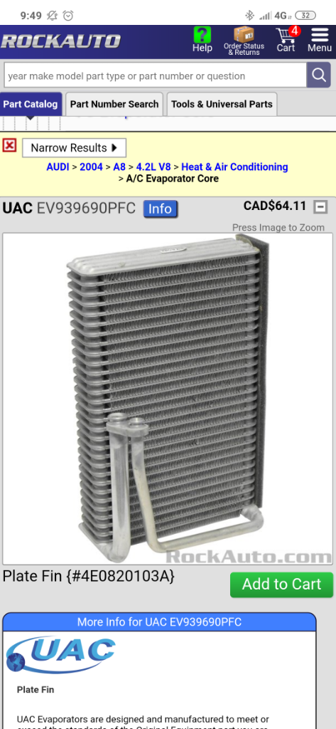 не в этой стране... легче наверное будет найти бу коннектор старого образца и первый вариант эвапоратора купить... потому как по 2й версии здесь точной инфы у продавцов нет. они все номера перводят в 1й вариантLongfighter писал(а): ↑Пт окт 18, 2019 8:04 pmможет тогда проще трубку кондишна поменять на подходящую?