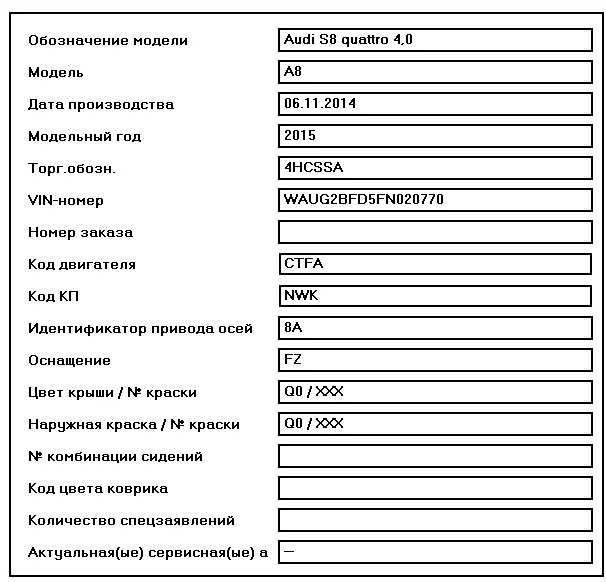 Код трансмиссии S8 D4 2015 г.в.