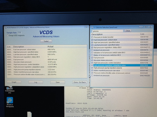 И еще снять логи давления в рампе и бензонасоса, заданное и фактическое давление.