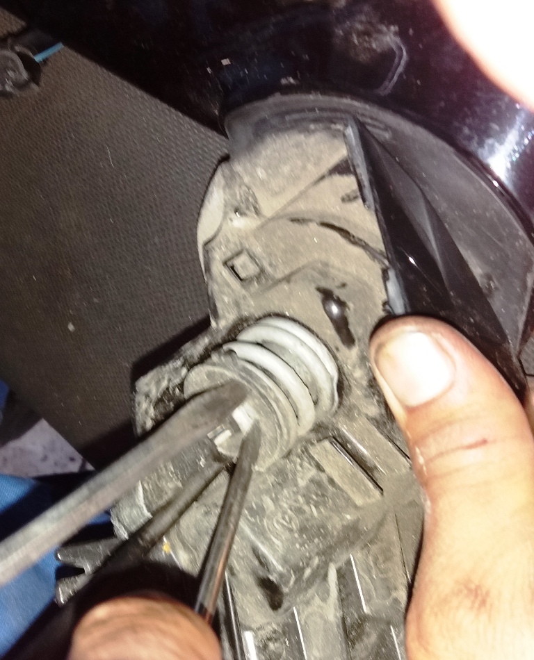 а там пружинки не должно быть под штырьком,а то я все почистил он ходит свободно,но иногда зеркало всё равно через раз проскакивает