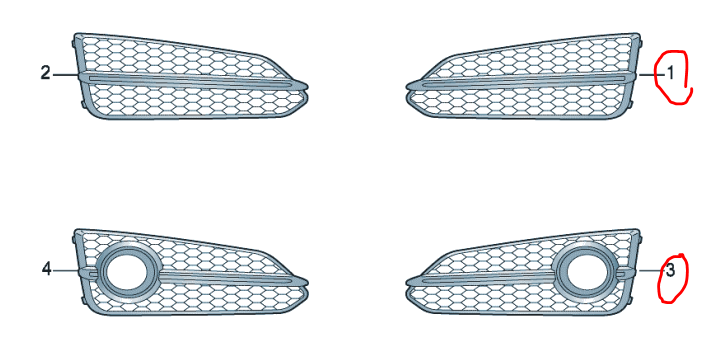 Не могу найти такие решетки (4h0807680 + 4h0807679) в бампер s-line D4 facelift и нижнюю хромированную «губу» (4h0807110)