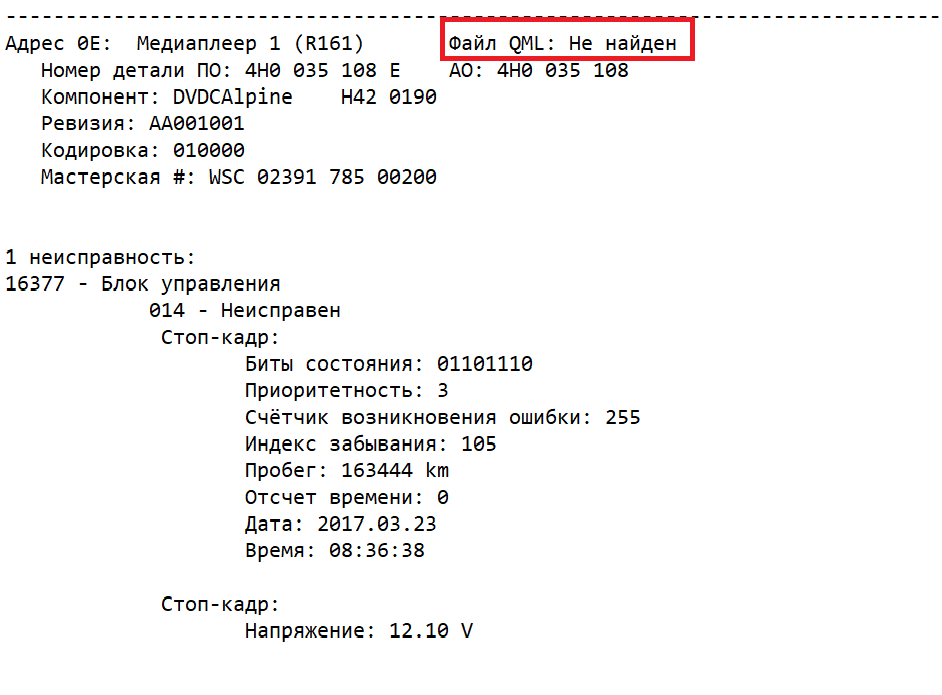 Адрес 0E: Медиаплеер 1 (R161) Файл QML: Не найден