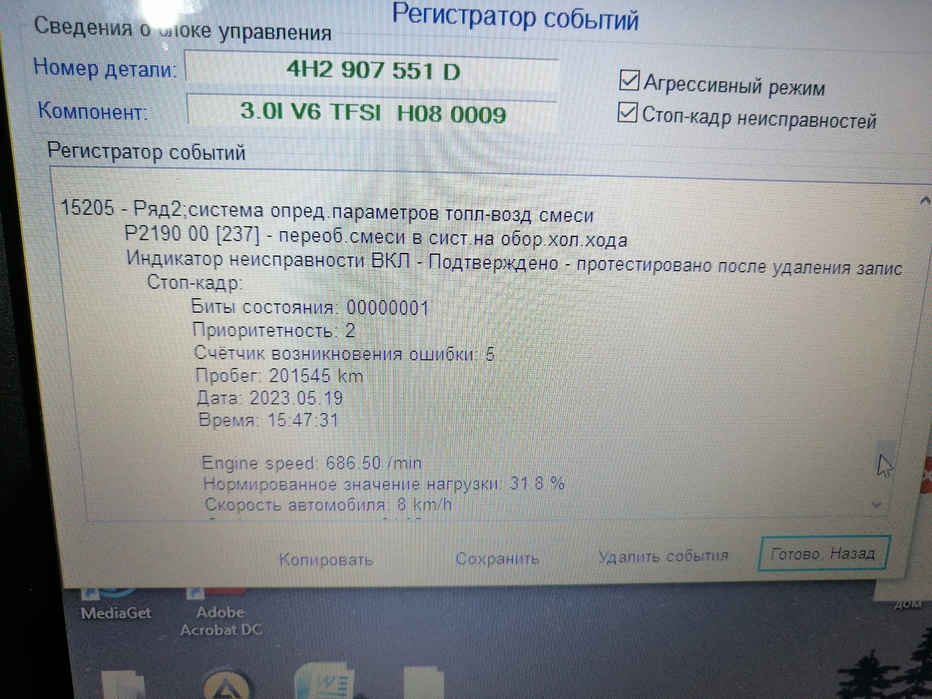 Чем дальше тем интереснее. Мотор работает довольно ровно. Тнвд и форсунки новые. Неделя прошла и чек. Причём первые две ошибки на фото это переобогащение смеси, а последние фото это переобеднение смеси. Чего бы ещё поменять) и куда рыть не понимаю пока. На просторах интернета пишут подсосы воздуха через сальники коленвала. Надо нормальный дымогенератор где то достать
