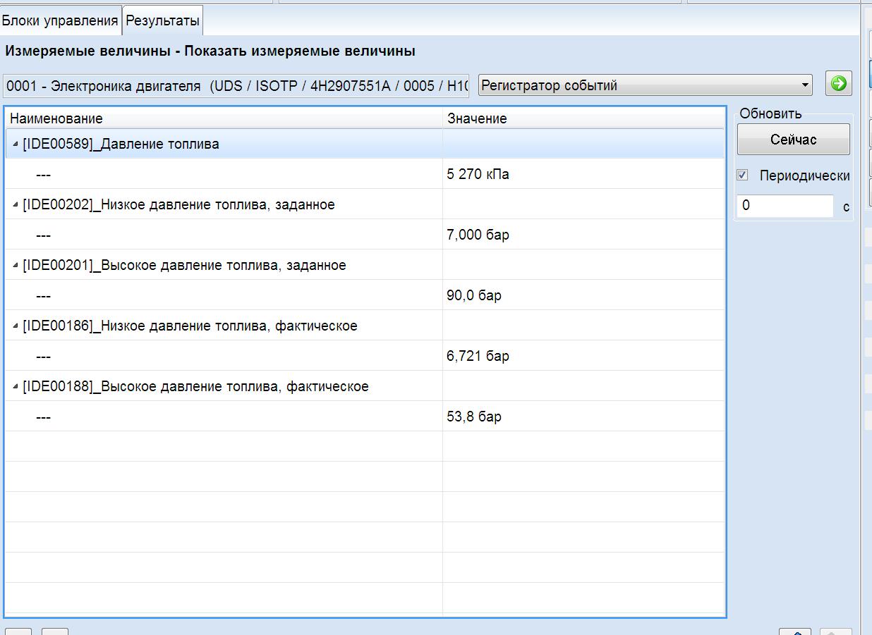 Адрес: 0001 Системное имя: 01 - Электроника двигателя Вариант протокола: UDS/ISOTP (Ereignisse: 4)